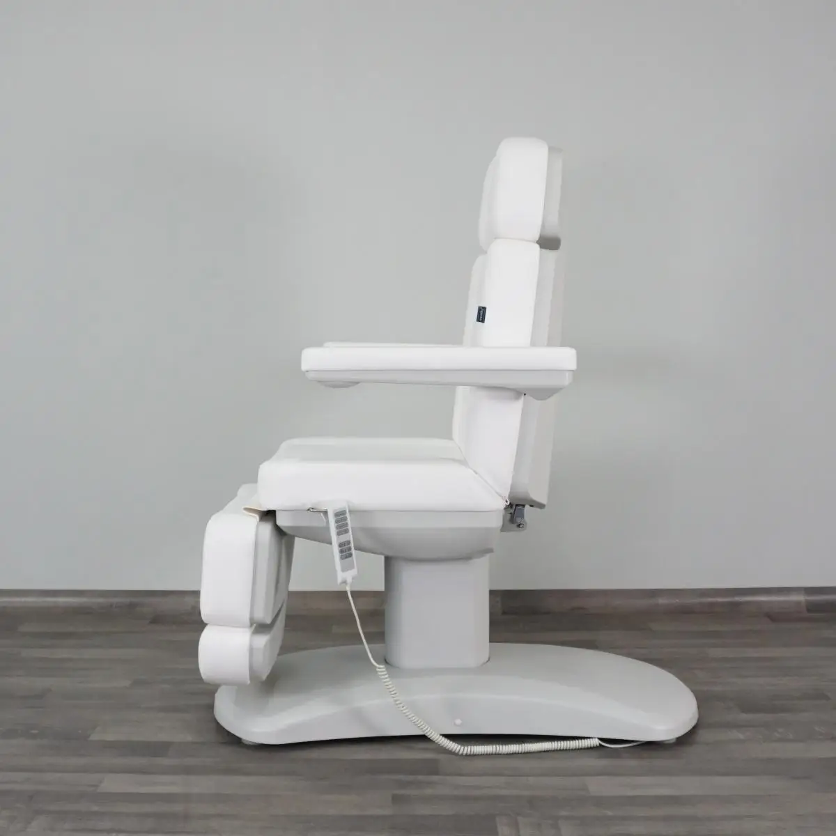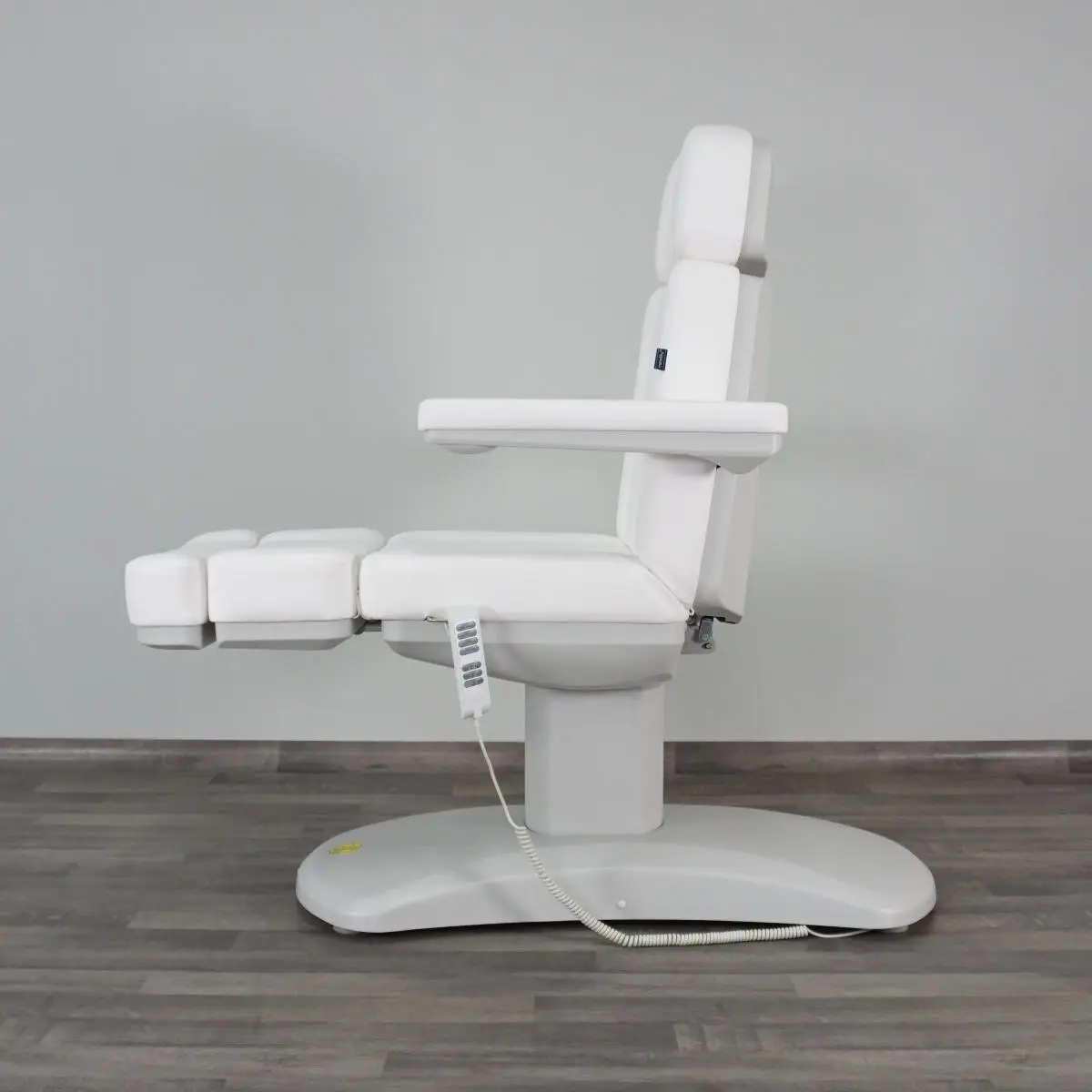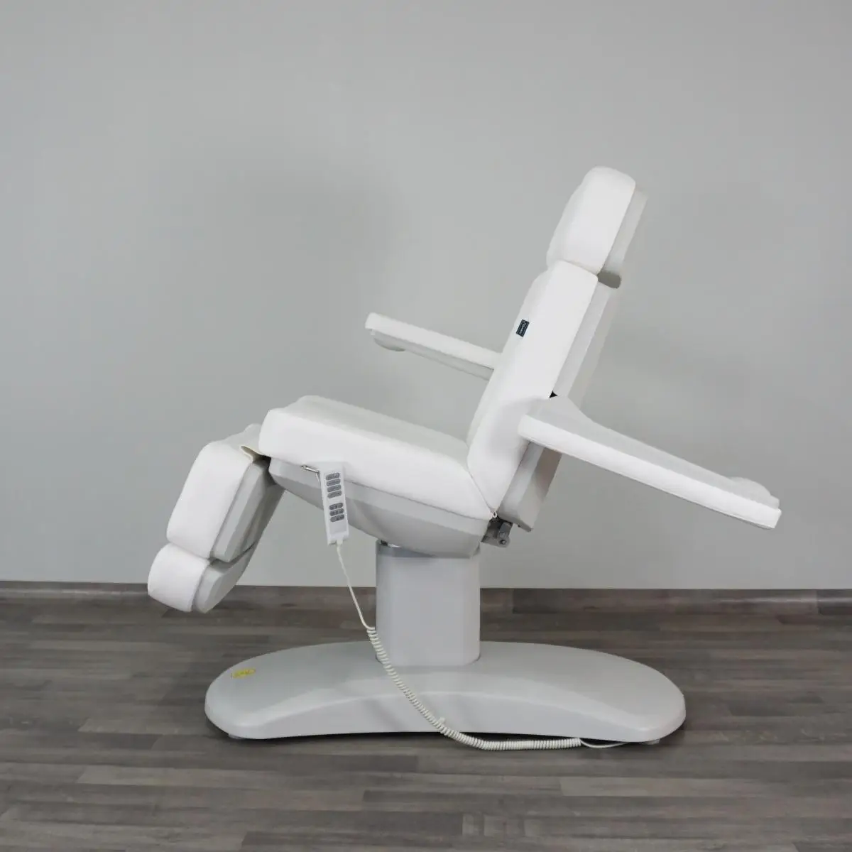 MATILDA Poltrona Lettino Elettrica Polifunzionale per trattamenti Estetici. Poltrona motorizzata da Centro Estetico per Trattamenti Viso e Corpo, Poltrona Lettino per Studio Podologico, Poltrona per Studio Estetico, Poltrona per Dermopigmentazione PMU, Poltrona da Visita Estetica, Poltrona Lettino per Trattamenti con Apparecchiature Estetiche. Garantisce la massima stabilità durante il lavoro ed estrema sicurezza per il cliente. Quattro motori elettrici permettono al professionista di lavorare in condizioni ergonomiche ottimali, accogliendo il proprio cliente nel massimo comfort per accomodarsi ed alzarsi senza sforzo. MATILDA consente di scegliere autonomamente la posizione e l’altezza desiderata. Tramite la pulsantiera integrata nello schienale e nella seduta, e tramite il telecomando in dotazione è possibile controllare tutti i movimenti singolarmente ALTEZZA – SCHIENALE – BASCULANTE – GAMBE. Fornita di un utile comando di azzeramento automatico (RST) che consente di riportare la poltrona nella posizione originale con un click, inoltre tramite i due tasti M1 e M2 si possono MEMORIZZARE due posizioni a scelta ALTEZZA – SCHIENALE – BASCULANTE – GAMBE. Con il tasto SET è possibile regolare intensità e colore della pulsantiera. Struttura completamente chiusa da carter in abs di colore grigio chiaro, che gli conferisce un design distintivo e racchiude tutti i meccanismi proteggendo l’utilizzatore nei movimenti. Grazie all’esclusivo sistema di inclinazione della seduta fino a 20 gradi è ideale per la creazione di più posizioni comode per facilitare i trattamenti e per la posizione Trendelenburg utile per creare una comoda forma ergonomica “chaise longue” per ridurre il carico sulla zona lombare del cliente durante la procedura. Seduta imbottita in poliuretano, con foro viso e un comodissimo cuscino in dotazione, rivestimento impermeabile a tenuta d’olio in Skai di colore Bianco oppure in Blue, facile da pulire e di alta qualità. La conformazione anatomica della seduta consente al cliente l’immediata percezione di assoluto comfort, limitando la sensazione di affaticamento in caso di trattamenti prolungati. Braccioli ribaltabili e rimovibili, regolabili automaticamente in base all’inclinazione dello schienale, poggiatesta regolabile ed estraibile, poggiapiedi reclinabile in modo indipendente fino a 90 gradi. Lo stile semplice ed elegante crea una perfetta simmetria con la straordinaria comodità, così potete offrire un servizio completo in uno spazio ridotto.